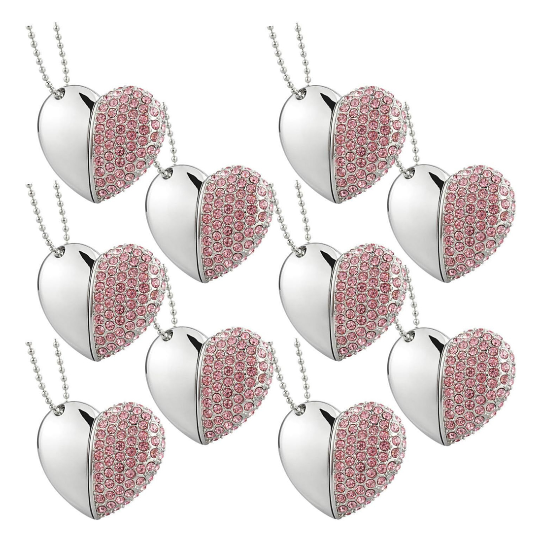 Crystal Heart USB Flash Drives Necklace USB Sticks Pack of 10 (Pink)