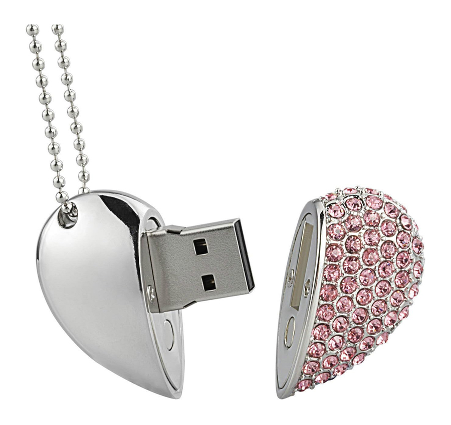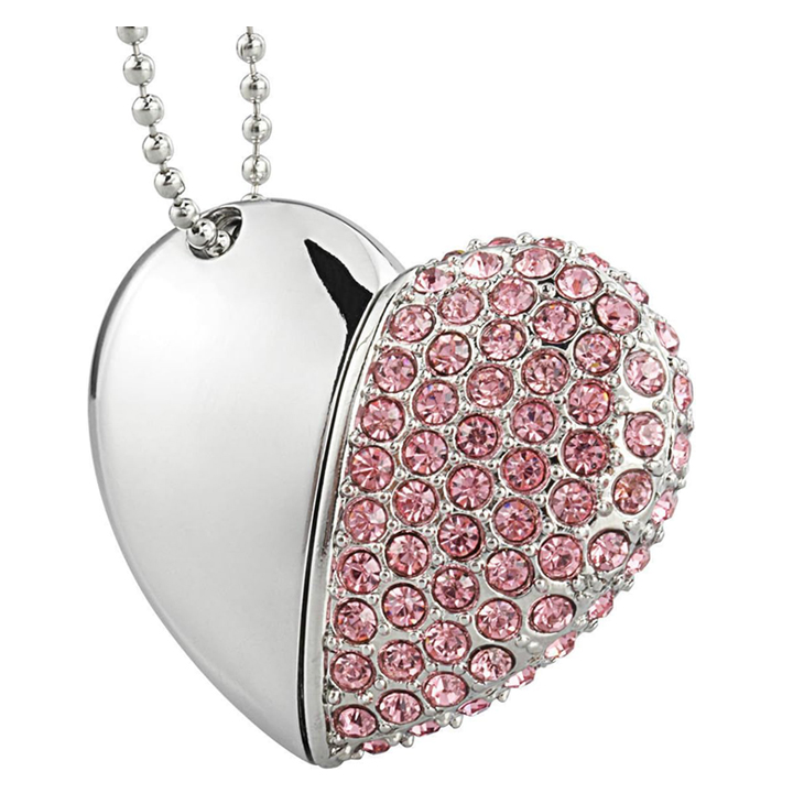 -10 x Diamond Heart Necklace USB Flash Drives (Pink)