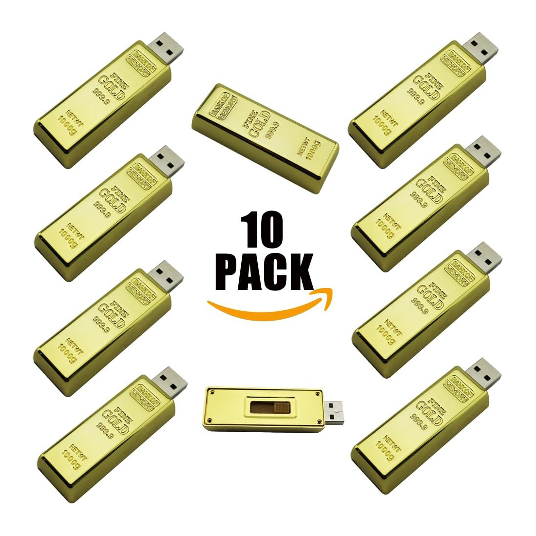 -10 x Gold Bar Shaped Flash Drive USB Sticks